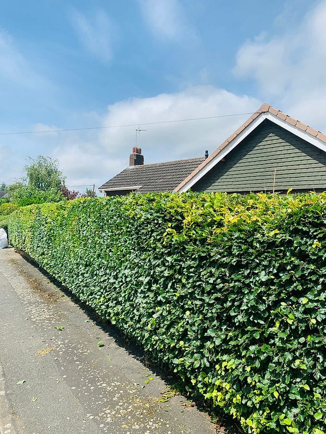 Hedge Trimming is the cutting of small amounts of plants and shrubs in a garden in order to make it look neater and tidier .